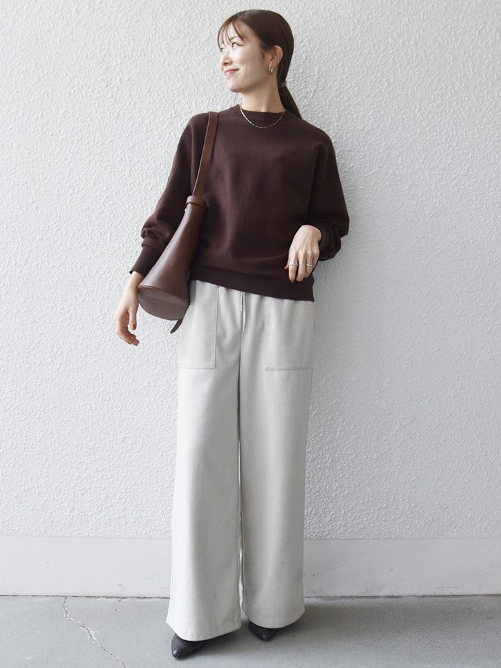 着用アイテム:クルーネック ドルマン ベーシック ニット プルオーバー ブラウン