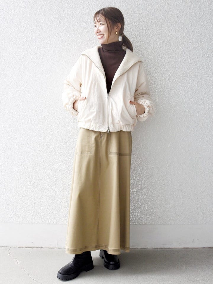 着用アイテム:ナイロン×ボア リバーシブル スタンドカラー ブルゾン ナチュラル