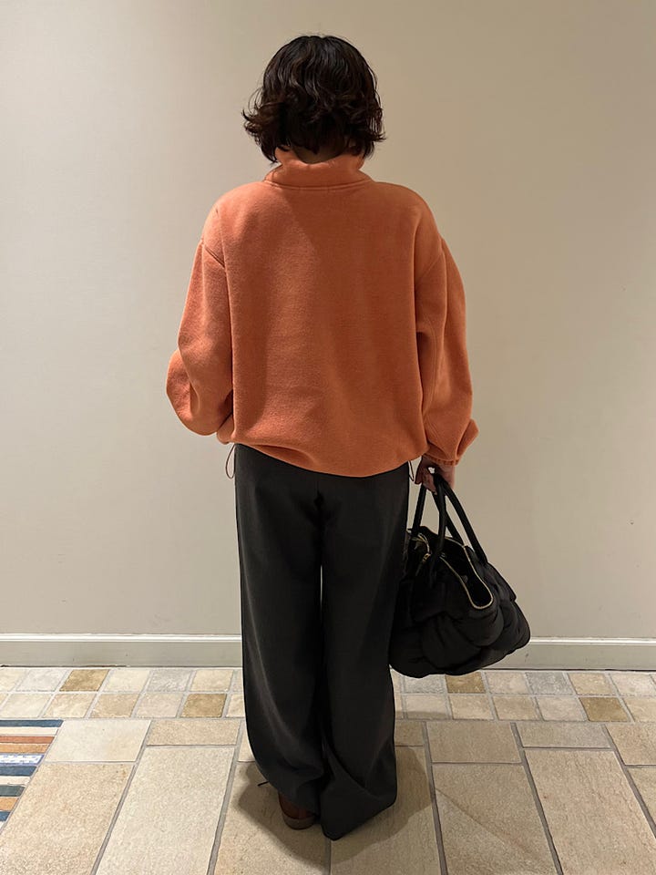 サイズ感:身幅ゆったり、身体のシルエットが出ないのが嬉しい。中にタートルネックなど入れても良さそうです。