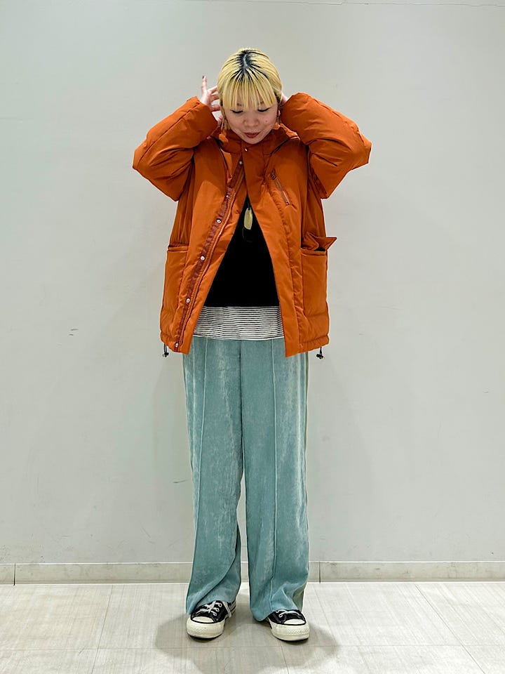 ゆったり着用したかったので普段より大きいサイズを着てみました。とても軽いですし、もこもこなり過ぎないので、カジュアルに着やすいダウンだと思います。