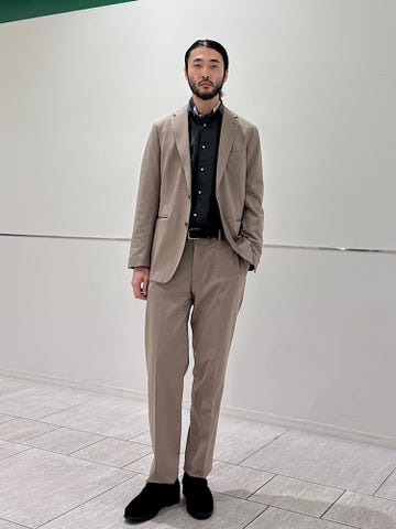 細身。防シワでイージーケア。ストレッチも効いてるので履きやすい。細いので人によってはワンサイズあげてもらってもいいとおもいます。
