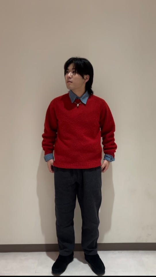〔LARGE〕【SHIPS別注】HARLEY OF SCOTLAND: ウール シャギー クルーネック ニット