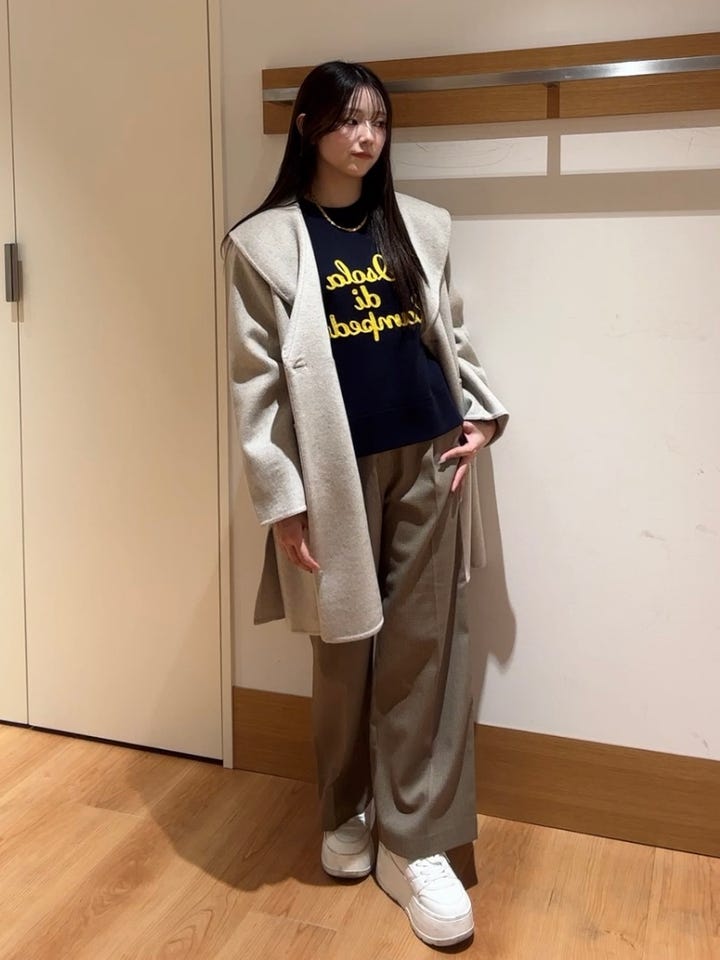 【素材感・着用感】モチモチとした肌触りです。ロゴのカラーが差し色となり暗くなりがちな冬のコーデが明るくなります!
