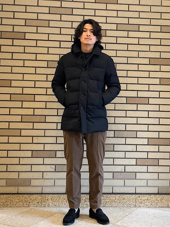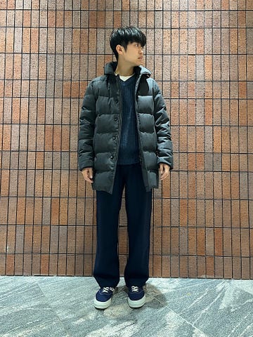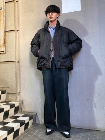 サイズ感:ゆったり目、中に厚手のニット着用できるサイズ感です。