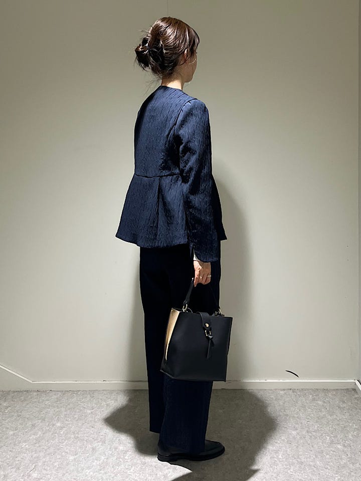 サイズ感ややコンパクトな作りのジャケットです。ペプラムのデザインが女性らしいシルエットでセットアップ対応のパンツと合わせても上品な印象にみせてくれます。