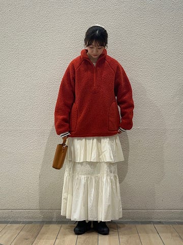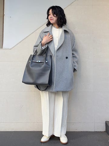 股上浅い作りで着丈は長すぎないので小柄な方にも合わせやすいサイズ感です。足回りはワイドストレートでバッグスタイルのシルエットもすっきりしています。普段使いにもおすすめのアイテムです。