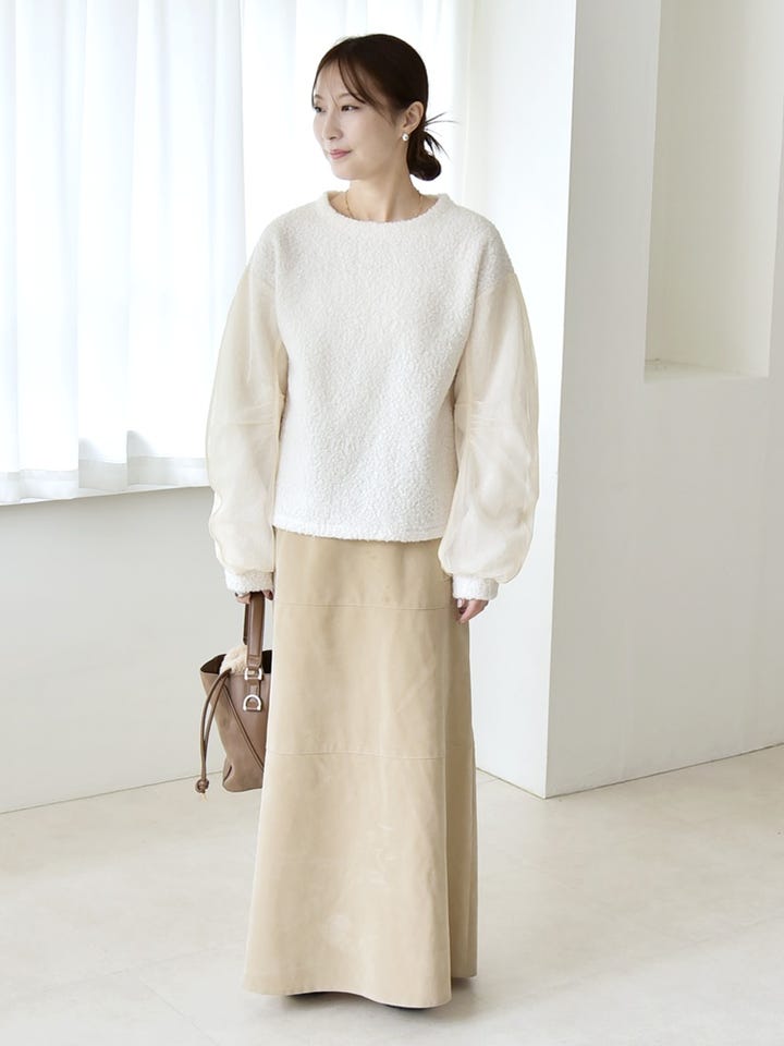 着心地:ハリのあるフェイクスエード生地。見た目より軽さがあるので楽に着られました。