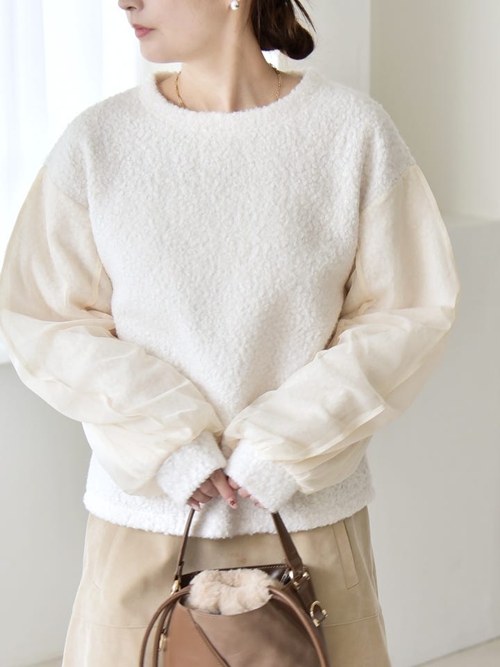 〔ONE SIZE〕quaranciel:〈洗濯機可能〉ボア × チュール コンビ ヨーク プルオーバー