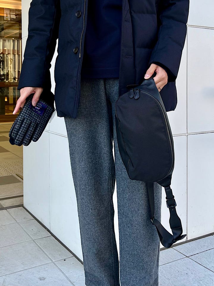 〔ONE SIZE〕SHIPS: シュリンクレザー × ファブリック コンビ ウエスト バッグ (ボディバッグ)