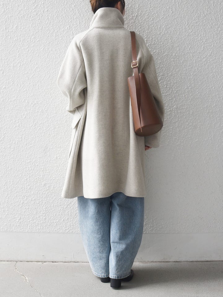 ラグランスリーブで肩まわりが楽な着心地。インナーに厚手のニットを合わせてもごわつきにくいです。