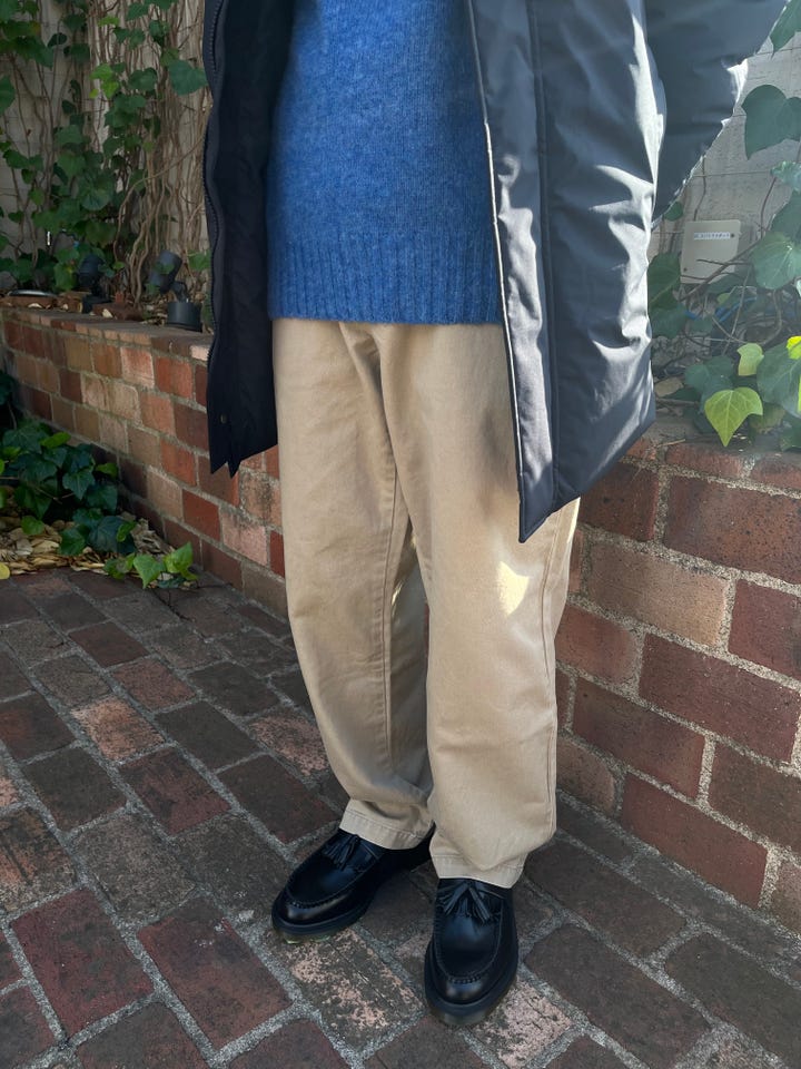 サイズ感:ゆったりなサイズ感中にジャケットや厚手のニット着用できます