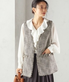 〔ONE SIZE〕トライスピン 杢 ツイード カラーレス ジレ(セレモニー対応可)