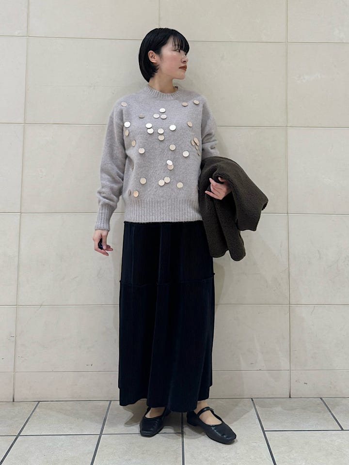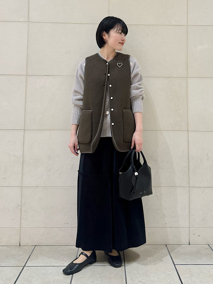 スカートでもパンツでもどちらでも合わせやすいデザインです。