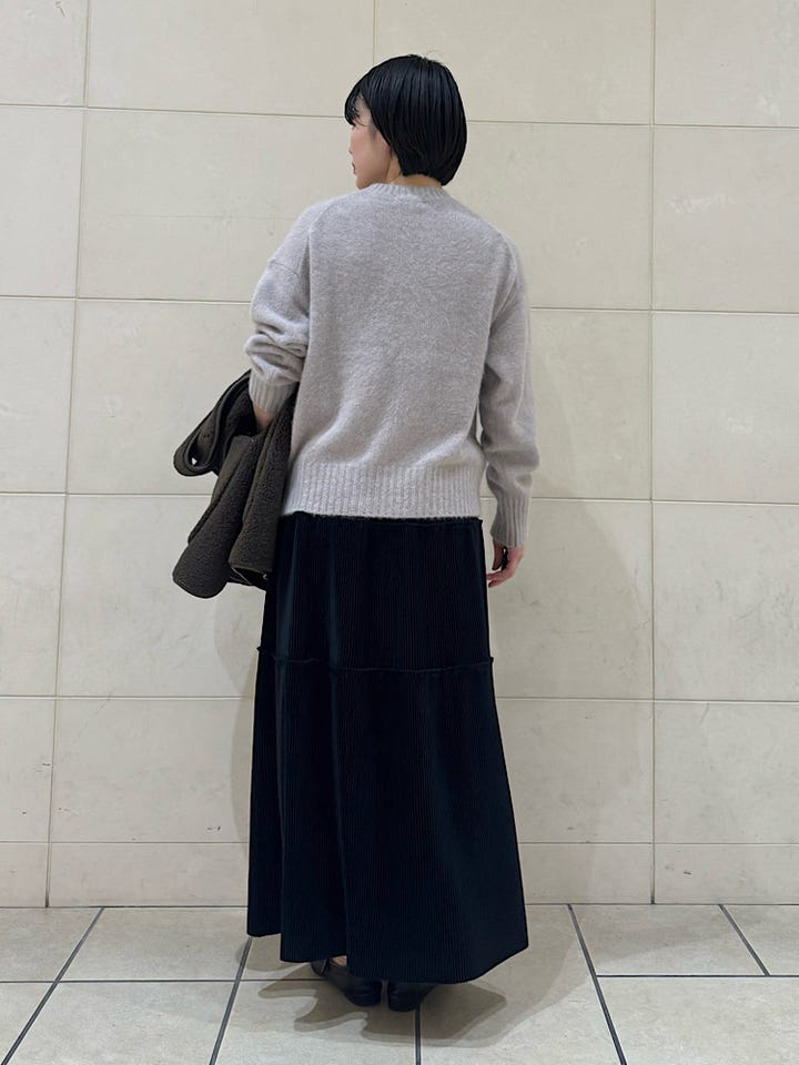 細かいプリーツと落ち感で、広がりすぎない綺麗なシルエットです。