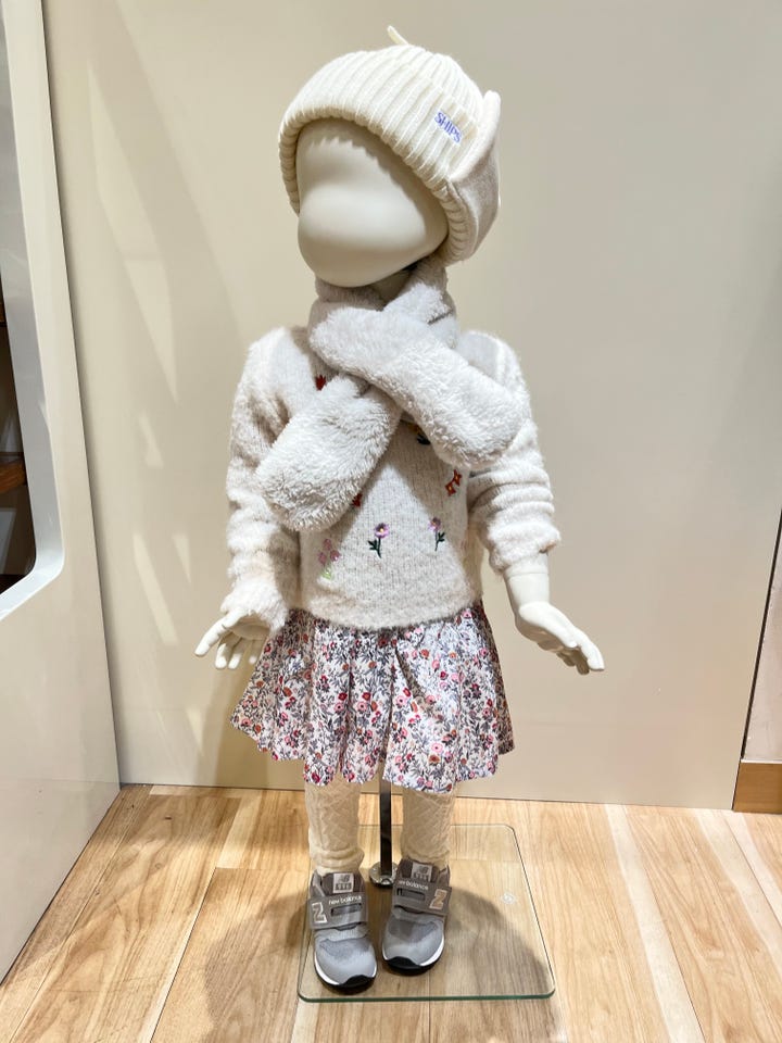 〔90〕SHIPS KIDS:80〜90cm / 〈洗濯機可能〉シャギー エンブロイダリー ニット