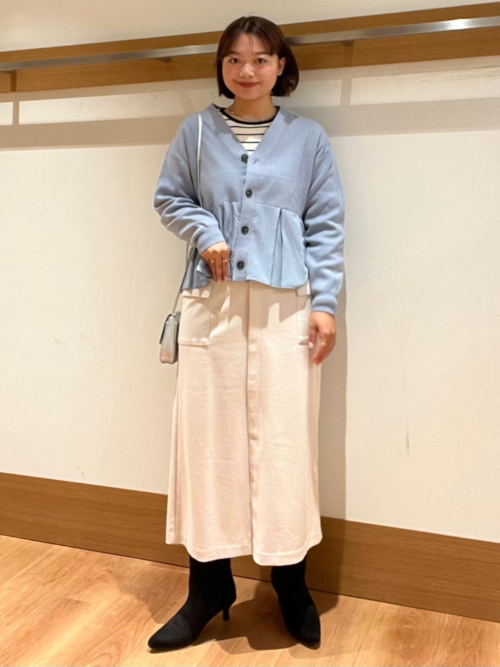プリーツデザインが女性らしく、ボタンを開けても雰囲気が変わって着回しやすいです!