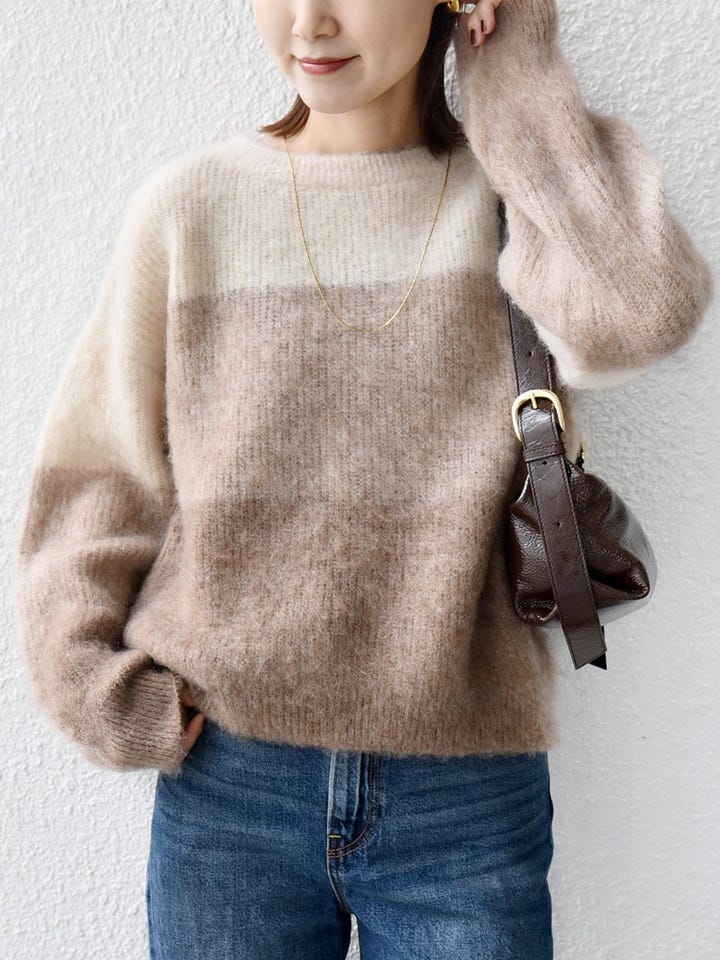 〔ONE SIZE〕《一部追加予約》【WEB限定】〈手洗い可能〉モヘヤ混 グラデーション ニット プルオーバー