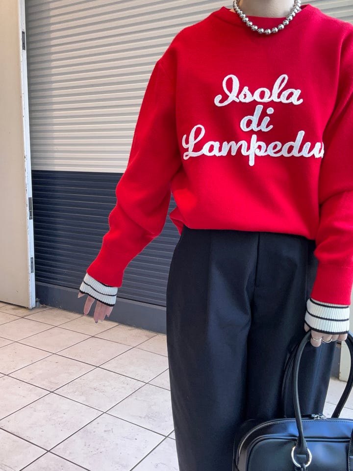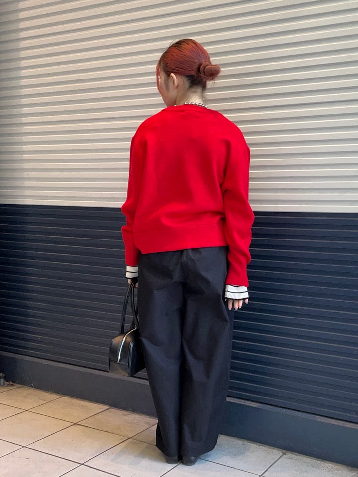 真っ赤なニットです。もちもちな素材で、肌触りがいいです!
