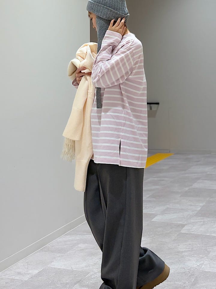【素材感・着心地】インナーとしても着用しやすいようにサイドにスリットが付いており、沢山着まわして頂けそう!オールシーズン使って頂けそうです!