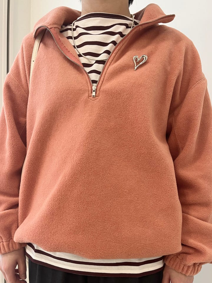 〔ONE SIZE〕〈洗濯機可能〉フリース 裾 ドロスト ハーフ ジップ プルオーバー