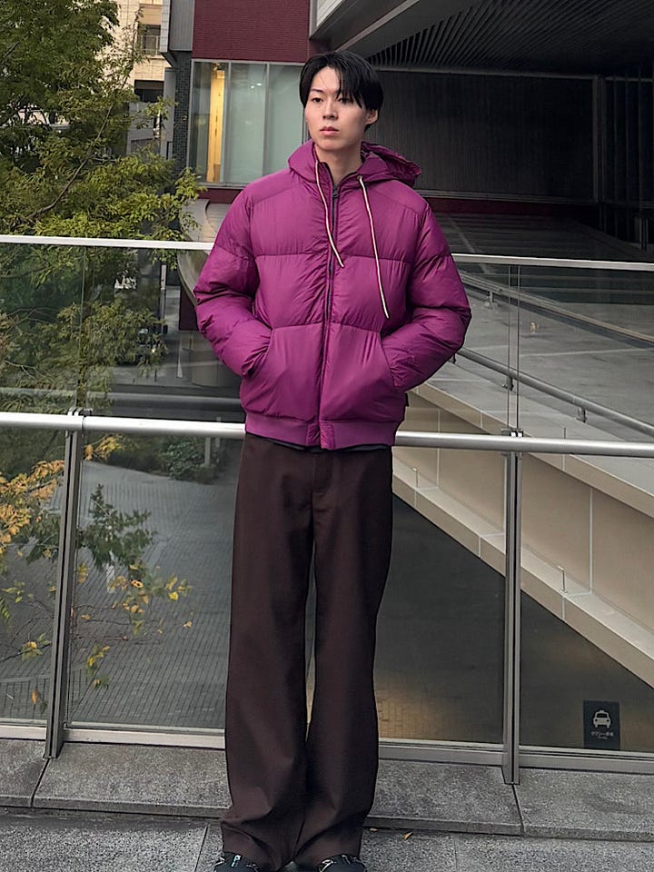 今回のスタイリングは派手なダウンを着用してシンプルになりすぎないようにしました。