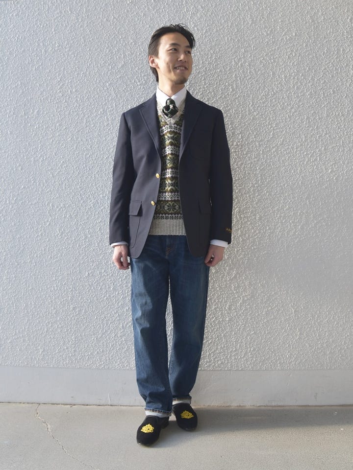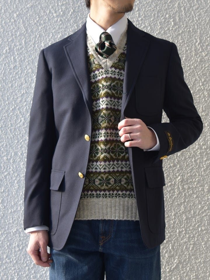 Southwickの定番モデル"CAMBRIDGE"ブレザーを使用したスタイリング。