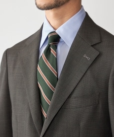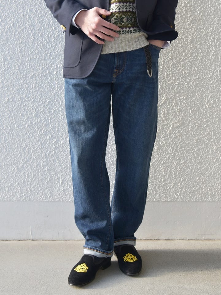 アメリカントラッドをベースにしながらもイタリア製のシャツ・タイ・デニムにエレガントなルームシューズを使用。
