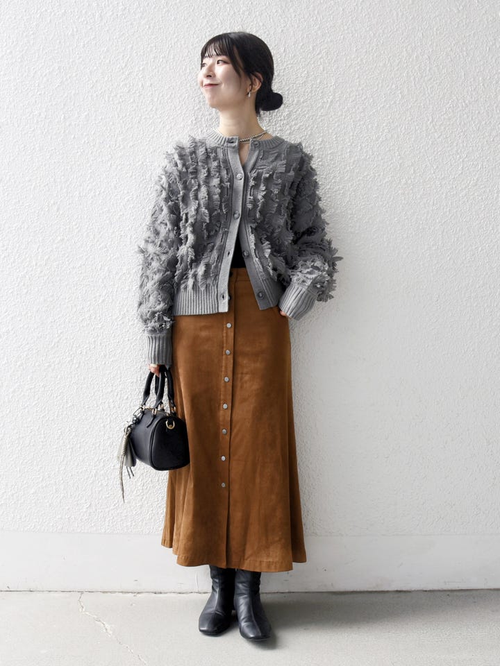 着用アイテム:SHIPS any: ポリエステル スエード フロント ボタン Aライン スカート