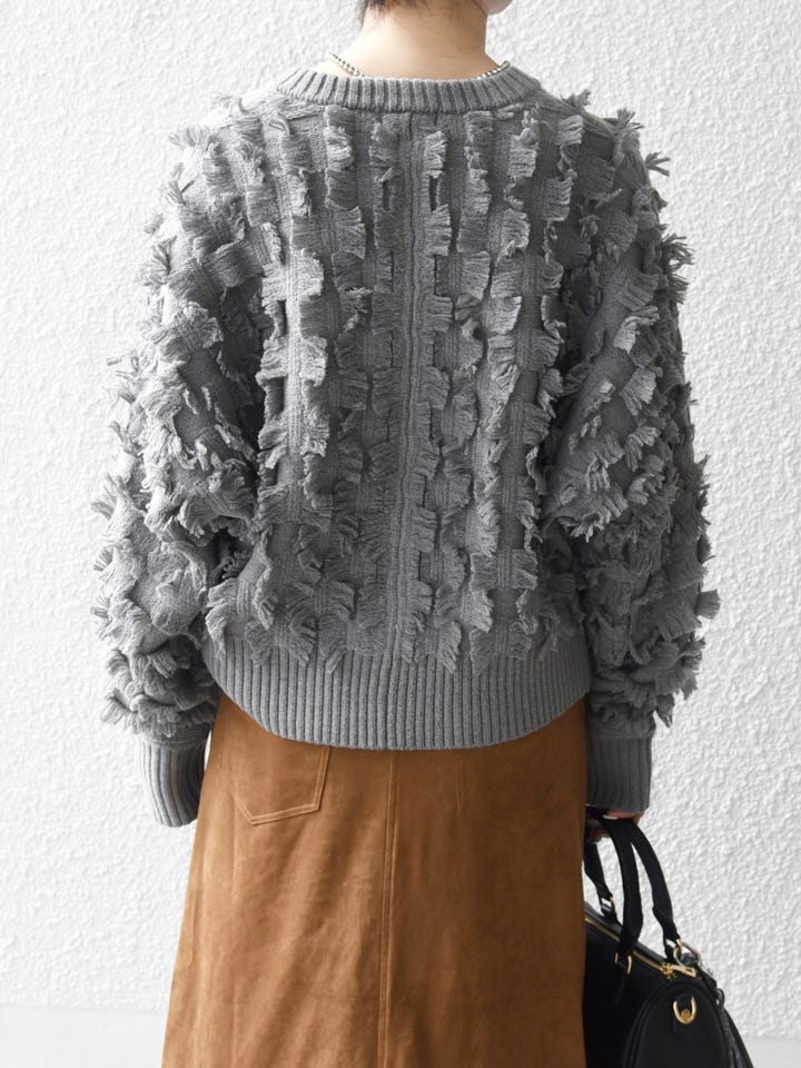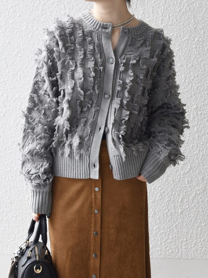 〔ONE SIZE〕SHIPS any:〈手洗い可能〉フリンジ デザイン ドルマン ニット カーディガン