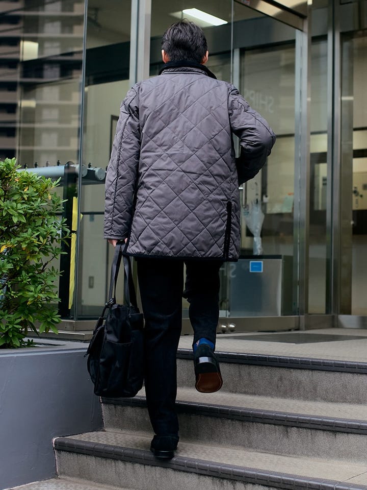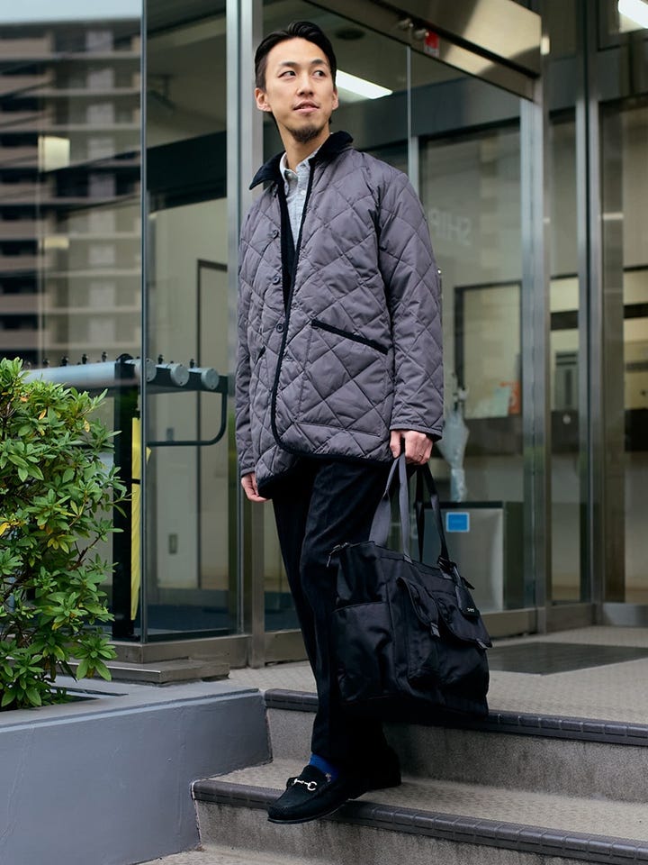 SHIPSがTAIONに別注をしたキルティングジャケットを使用したスタイリングです。