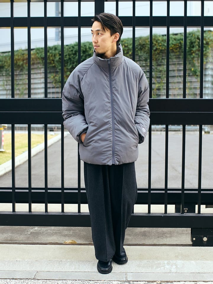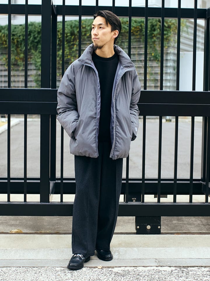 ボリューム感のある中綿ジャケットを使用したカジュアルスタイル。