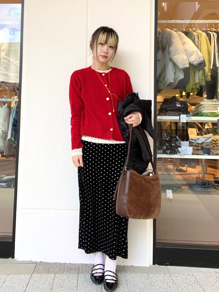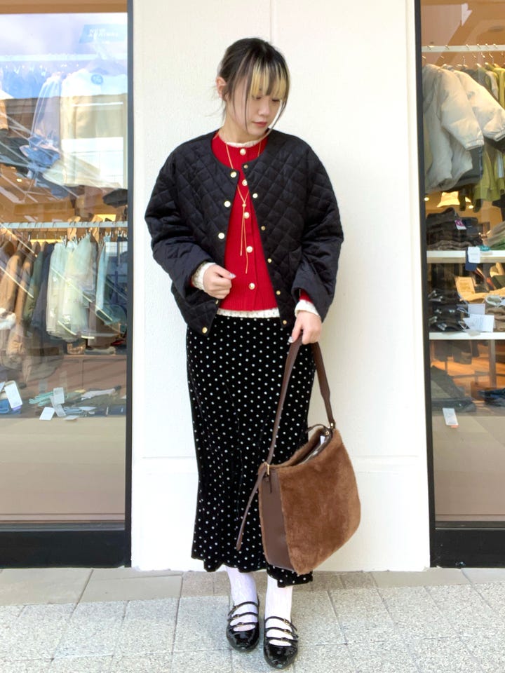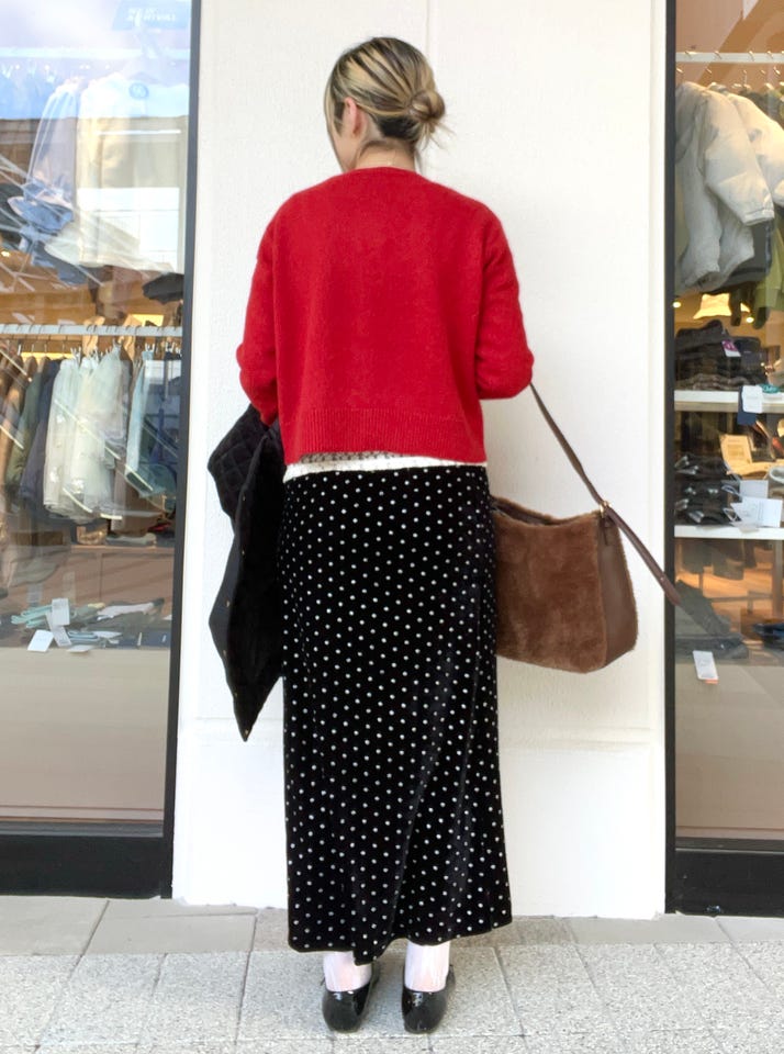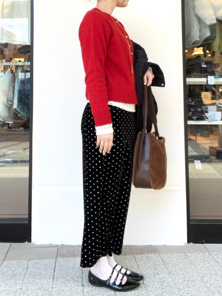 着心地: ゆったりとしたサイズ感で、インナーにたくさん着込めそうです!ベロアの光沢感で大人っぽい着こなしができます!