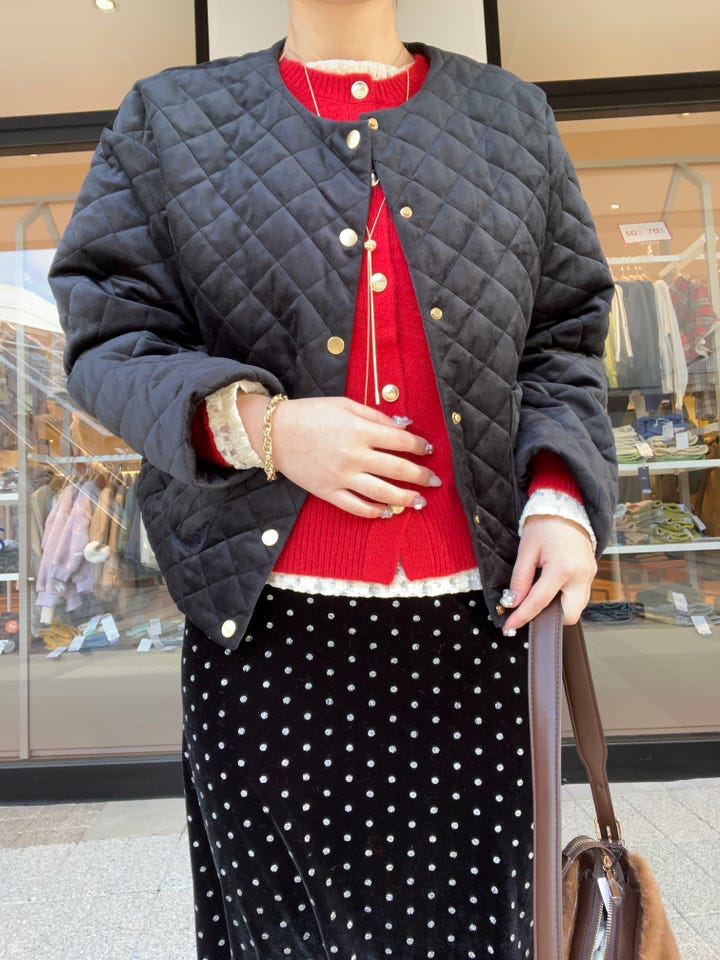 〔ONE SIZE〕SHIPS Colors:ポリエステルベロア ノーカラー キルティング ジャケット