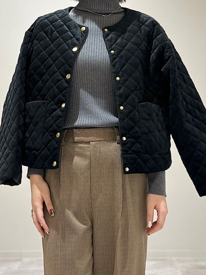 〔ONE SIZE〕SHIPS Colors:ポリエステルベロア ノーカラー キルティング ジャケット