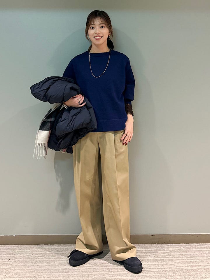 サイズ感: 程よいゆとりあり。着丈はヒップにかかるくるい。