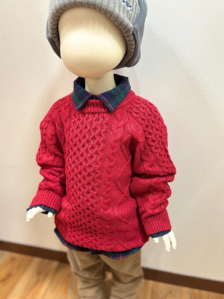 単体でも表情のあるケーブル編みが華やかに見せてくれます!