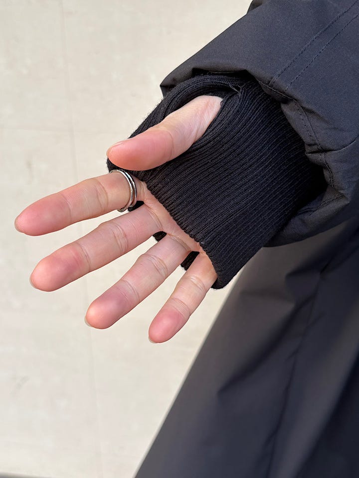 保暖又有分量感,穿起來卻非常輕盈舒適。具備防風、防?水加工及袖口的手套設計等,機能性非常好的鋪棉大衣。