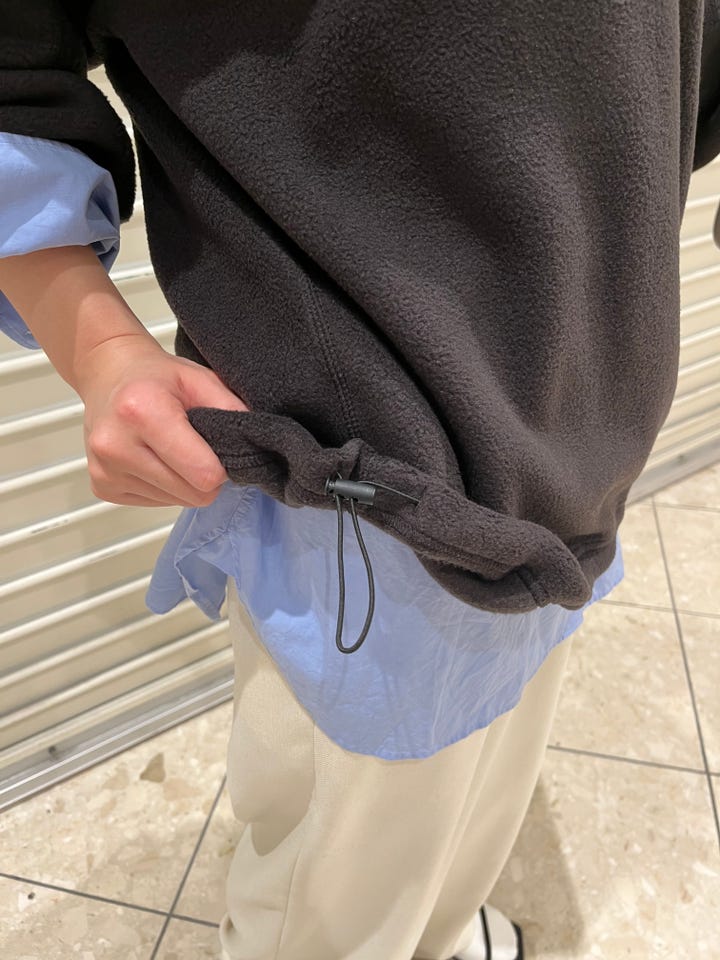 〔ONE SIZE〕〈洗濯機可能〉フリース 裾 ドロスト ハーフ ジップ プルオーバー