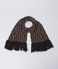 【素材感・着心地】幾何学模様とフリンジがアクセントのスカーフです。