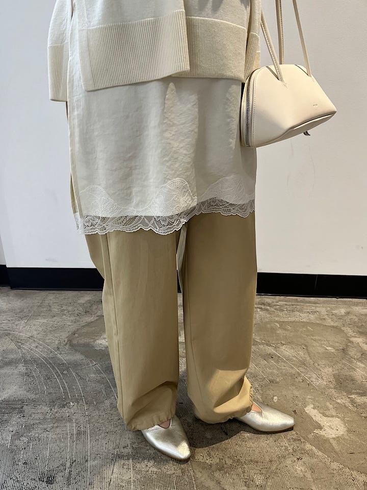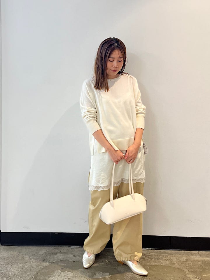 着心地:トレンドのキャミソールをニットとあわせてレイラードしました。一枚あると着回しできるので万能アイテム!