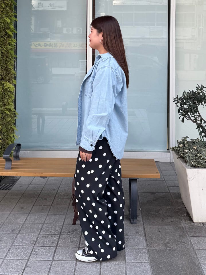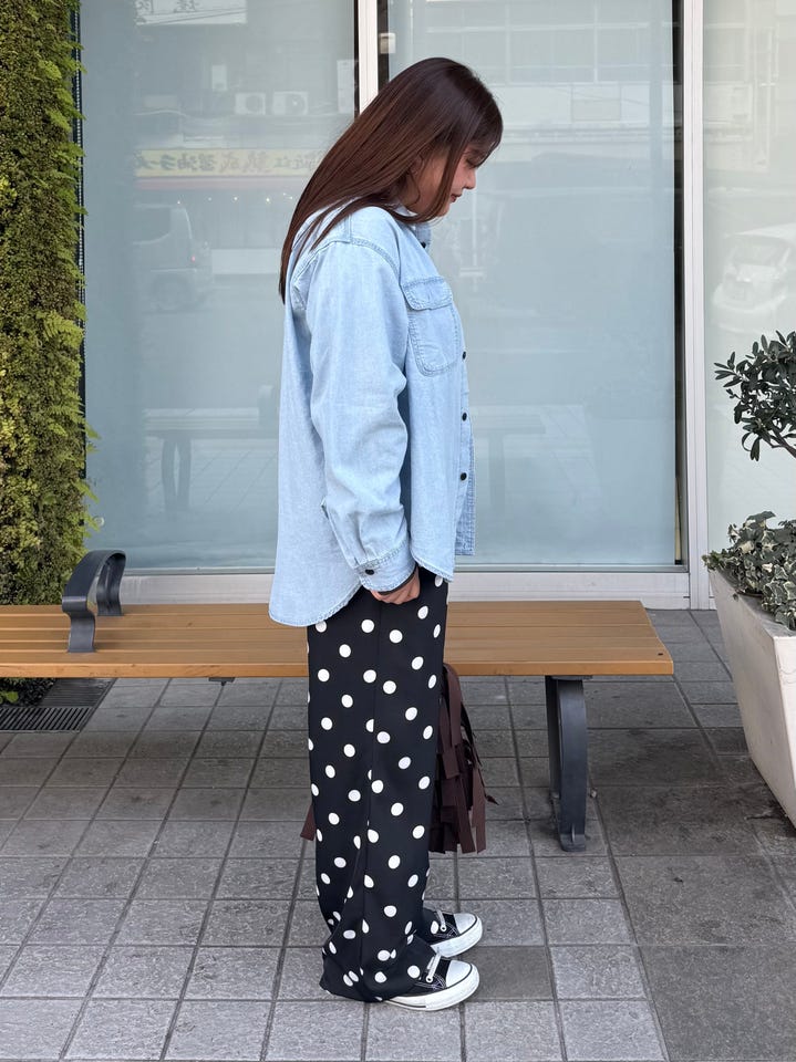 着心地:ワイドシルエットにウエストゴムでとても楽ちんです!トロンとした落ち感と僅かな光沢感でカジュアルになりすぎず、色んなコーディネートに合わせやすいです!