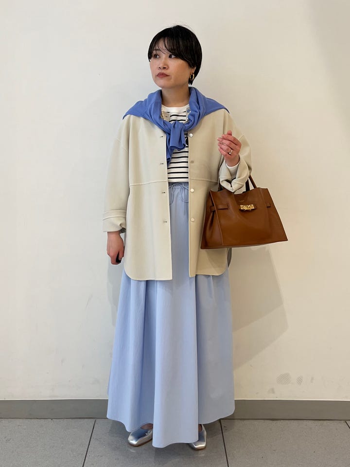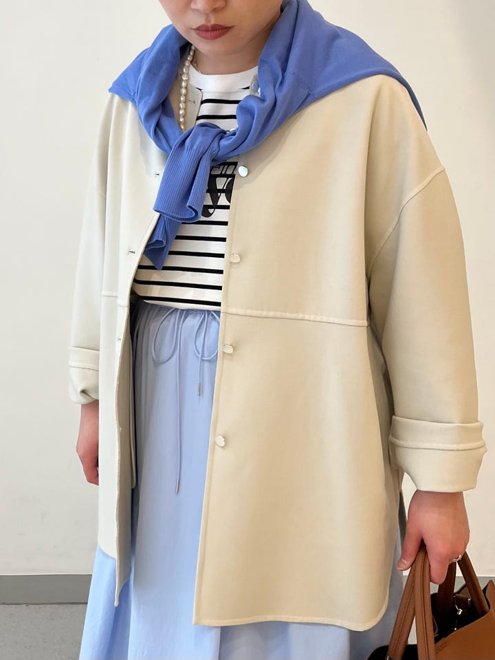 着心地:薄手のアウターで軽く羽織れます。ゆったりとしたシルエットですが、落ち感があり大きく見え過ぎません。