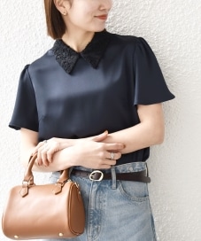 着用アイテム:サテン レースカラー ショートスリーブ ブラウス ネイビー