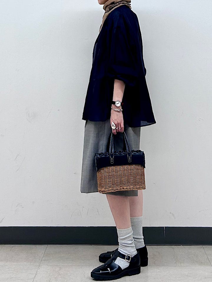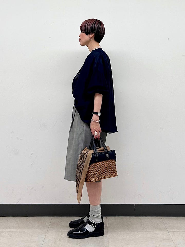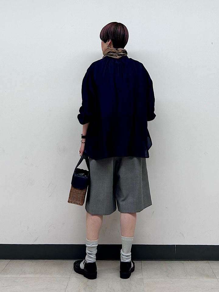 着心地:一見かたい印象ですが、しなやかで軽く、シャリ感のある爽やかな肌触り。裏地付きで肌あたりもさらりとして快適な着心地でした。
