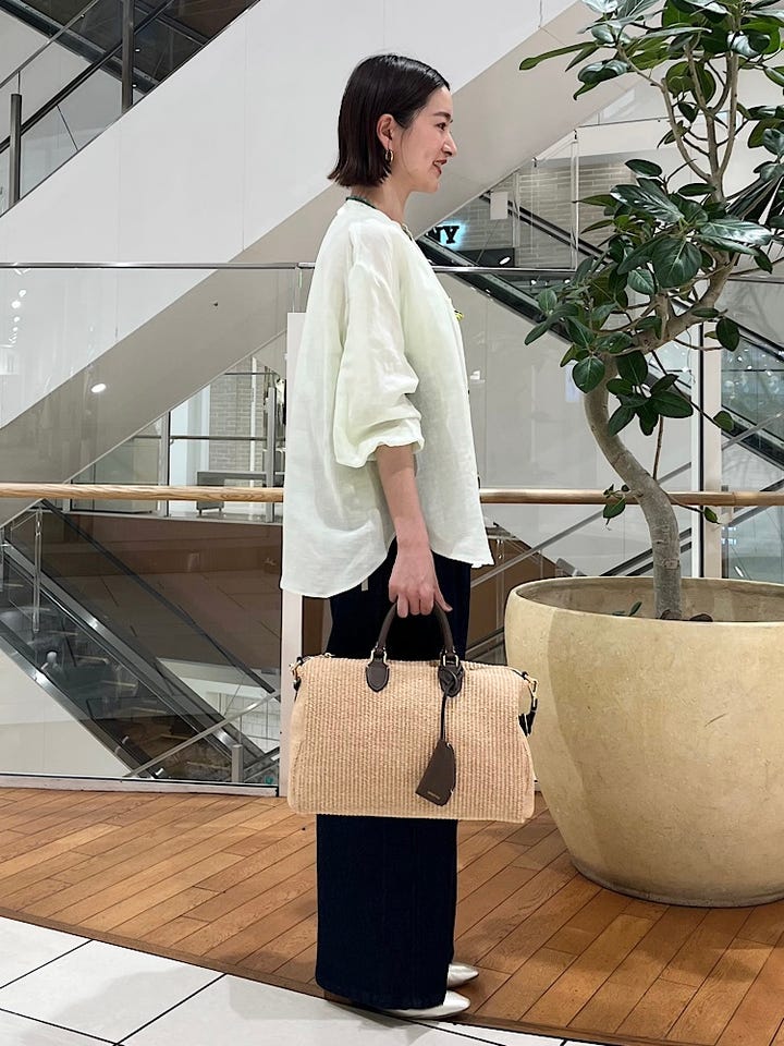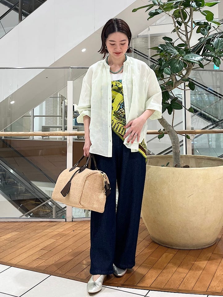 〔ONE SIZE〕《一部追加予約》〈手洗い可能〉IMPERIAL LINEN 混 バンドカラー スキッパー シャツ