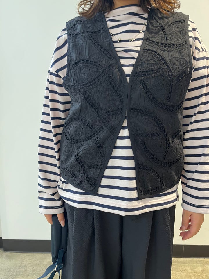 着用アイテム:オープンワーク レース刺繍ベスト