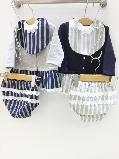 お祝いにもオススメなベビーロンパース☆ 上下別々でも着られる優れものなので、重宝すること間違い無しです♫