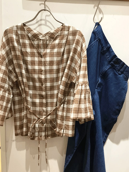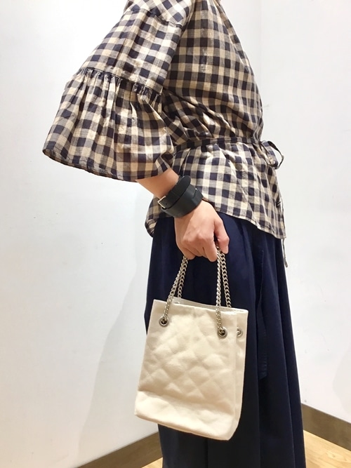 皆さんこんにちは! 今週のおすすめコーディネートのご紹介です。 毎シーズン人気のギャザーパンツの新作は、ベルト付きでウエストマークでき、コンパクトなニットをインして着るなど、コーディネートの幅も広がりますよ。 ローン素材のチェックシャツはフレアスリーブで夏らしく、秋にはニットカーディガンのインナーにしても映えるアイテムです。 秋まで着れるアイテム、多数取り揃えてますので是非ご来店くださいませ。スタッフ一同、お待ちしております!