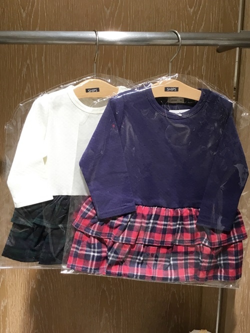 お出かけ着にもしやすいシンプルなデザインで、スカートのチェック柄は金の糸がアクセントになっております♪