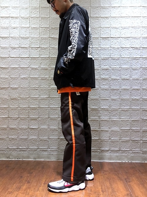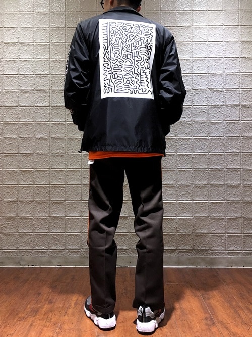 別注のコーチジャケット・ロングスリーブカットソーを使ったコーディネートです。 どちらも秋口に使いやすく、ロンTは差し色に重宝します。